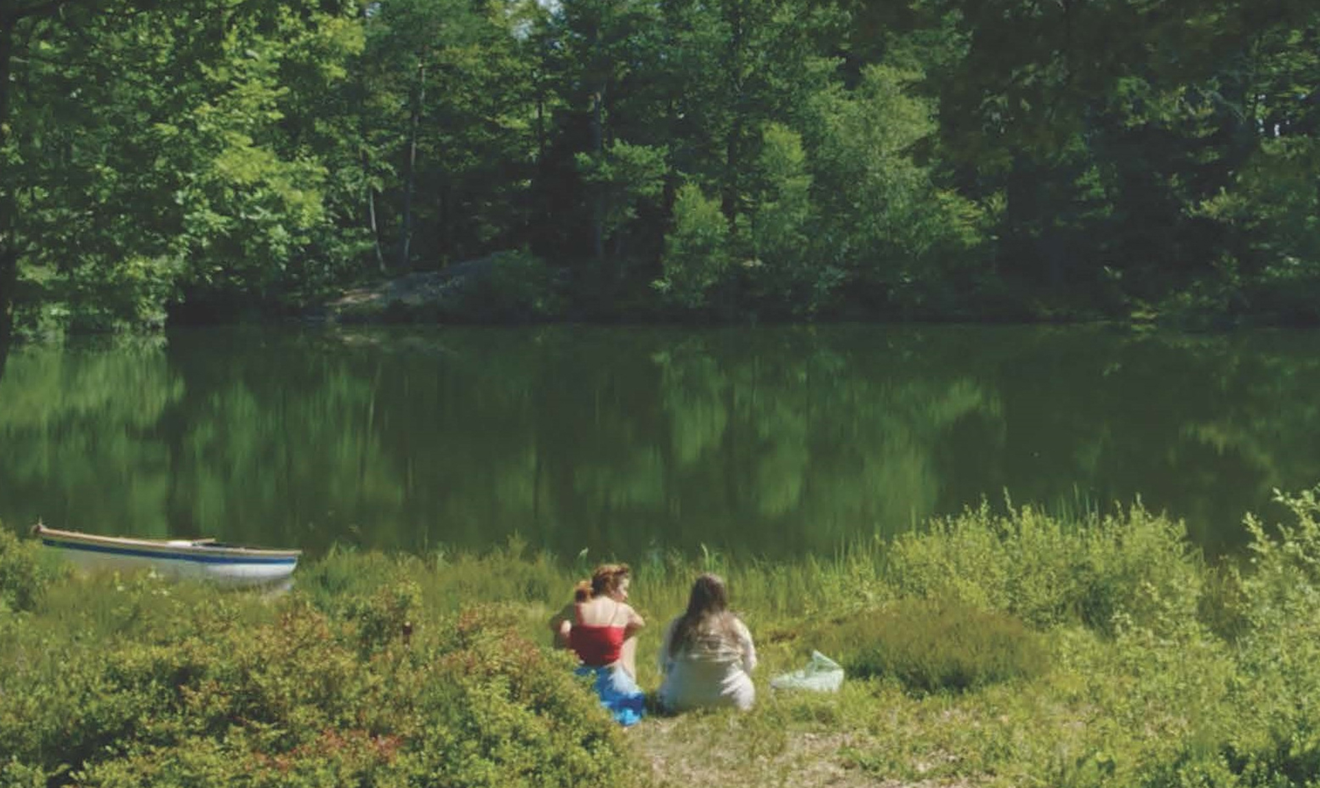 Zwei junge Frauen genießen die wilde Umgebung eines abgelegenen Sees. Es ist ein sonniger Tag – alles scheint gut.